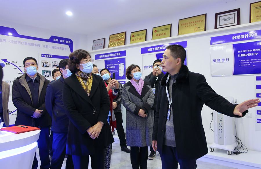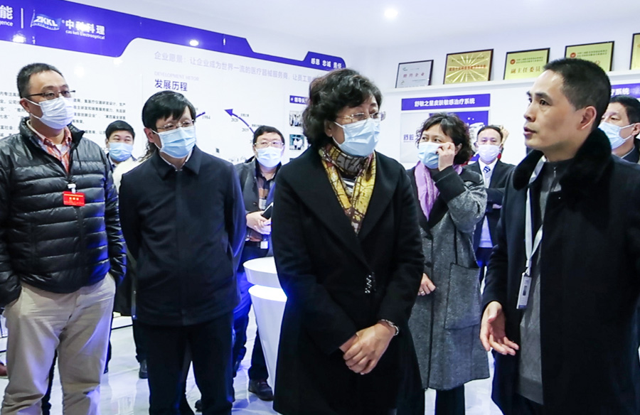 到访全员首先来到中科科理展示厅,详细了解公司的发展历程以及公司的核心产品。舒敏之星、颠覆之星、舒敏之光、狂塑之星、智能注射器、癌症早中晚期筛查系统等高端、专业的产品线,让各位领导、专家们耳目一新,也肯定了中科科理公司以创新谋发展的先进经验理念。